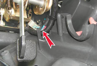 3. Переводим рычаг механизма регулировки наклона рулевой колонки в нижнее положение. 4. Опускаем нижнюю накладку и вынимаем из держателя накладки жгуты проводов.