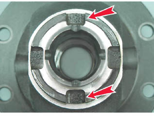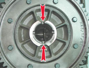 Сборка Собираем дифференциал в обратной последовательности. При этом ведомую шестерню устанавливаем на корпусе дифференциала немаркированной стороной к посадочному месту. Перед заворачиванием болтов крепления ведомой шестерни обезжириваем их резьбовую часть и наносим на нее клей-фиксатор. Поверхности трения деталей при сборке смазываем чистым трансмиссионным маслом. Ведущую шестерню привода датчика скорости автомобиля, устанавливаем так, чтобы ее выступы вошли в две более глубокие и узкие выемки корпуса дифференциала. Две другие - более широкие выемки - предназначены для захватов съемника.