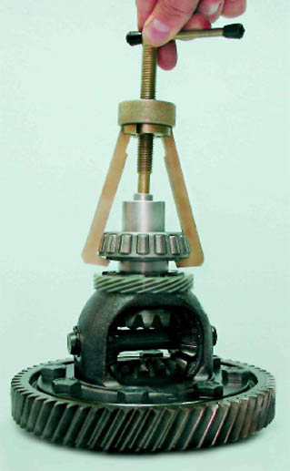 11. Слегка постукивая молотком из мягкого металла по шестерне. Через выколотку спрессовываем шестерню с корпуса дифференциала.