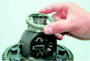 9. Извлекаем из корпуса дифференциала сателлиты и снимаем с оси сателлитов второе стопорное кольцо.