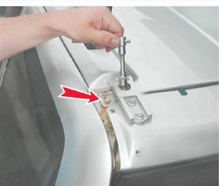 21. Снимаем дверь вместе с петлями. Установка Устанавливаем дверь в обратной последовательности. Чехлы заправляем в отверстия шлицевой отверткой с тонким лезвием.