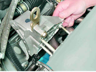 10. Чтобы не повредить разъемы датчиков, отсоединяем провода от датчиков температуры охлаждающей жидкости системы управления двигателем (см. 8.4.17, п. 3) и указателя температуры (см. 13.7.4, п. 3), а также от датчика положения распределительного вала, если снимаем головку блока цилиндров в сборе (см. 8.4.12, п. 2). 11. Торцовым ключом на 13 мм отворачиваем две гайки крепления корпуса термостата.