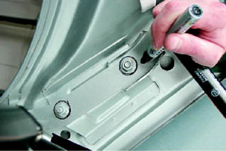 Капот - снятие, установка и регулировкаДля выполнения работы потребуется помощник. Совет: Газовые пружины лучше не снимать или сделать это после снятия капота. Снятие 1. Подготавливаем автомобиль к выполнению работы (см. 5, п. 1, 2 и 4). 2. Открываем капот. Для упрощения сборки на петлях капота маркером отмечаем положение четырех шайб, установленных под гайками крепления капота.