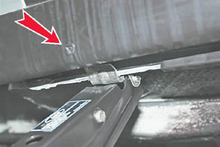 6. Устанавливаем под порог автомобиля домкрат. При этом нижняя опорная площадка домкрата