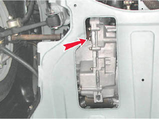 Коробка передач - замена маслаМасло в коробке передач заменяем через 75 000 км пробега либо через пять лет, в зависимости от того, что наступит раньше. Совет: Масло лучше менять сразу после поездки, пока оно горячее, так масло быстрее и полнее сливается вместе со взвешенными частицами Предупреждение! Температура разогретого масла может достигать 90° С, будьте осторожны! Для выполнения работы потребуются: - смотровая яма или эстакада; - широкая емкость объемом не менее 4 литров; - воронка или специальный шприц. Последовательность выполнения 1. Подготавливаем автомобиль к выполнению работы (см. 5, п. 1 и 2б). 2. Устанавливаем под сливное отверстие картера коробки передач емкость. 3. Ключом на 17 мм отворачиваем пробку сливного отверстия. Замечание: Доступ к пробке сливного отверстия возможен через отверстие в брызговике двигателя Следует учесть, что в начальный момент слива масла, струя попадет на верхнюю поверхность брызговика двигателя и растечется по ней. Чтобы избежать разлива масла можно загнуть кромку брызговика вверх (напротив сливного отверстия или снять брызговик с автомобиля).