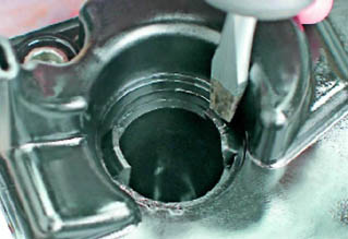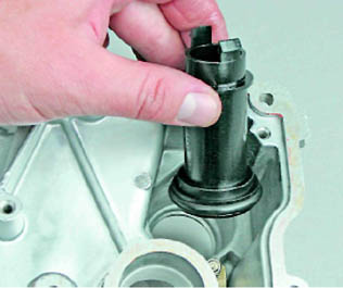 11. Покачивая из стороны в сторону, извлекаем маслозаливную горловину.