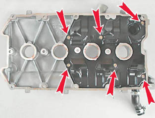 10. Снимаем маслоотражатель с крышки головки блока цилиндров. 6. Торцовым ключом на 8 мм отворачиваем 15 (или 14) болтов крепления крышки головки блока цилиндров.