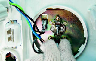 4. Снимаем наконечник провода с вывода лампы дальнего света.