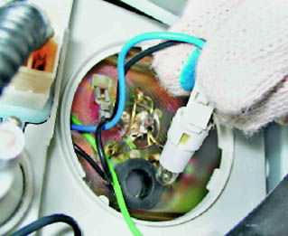 2. Не отсоединяя провода, извлекаем патрон лампы габаритного света из отражателя.
