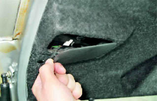 1. Подготавливаем автомобиль к выполнению работы (см. 5, п. 2). На автомобиле с кузовом универсал для доступа к контактной панели фонаря необходимо снять крышку с обивки двери.