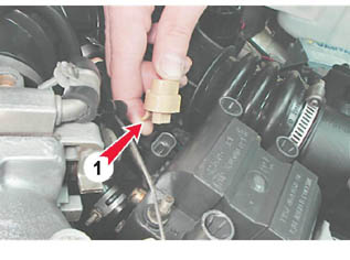 4. Освободив фиксатор (1), отсоединяем колодку проводов от модуля зажигания.