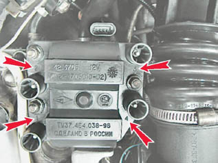 3. Отсоединяем наконечники высоковольтных проводов от модуля зажигания (см. 8.4.5, п. 4).