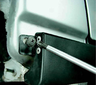 3. Отворачиваем шесть саморезов верхнего крепления накладки порога (по три в каждом проеме боковых дверей).