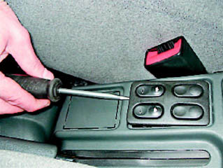 7. Поддев шлицевой отверткой снимаем панель выключателей электрических стеклоподъемников.