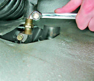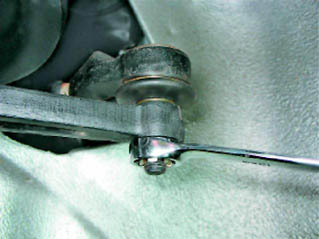 5. Накидным ключом на 19 мм отворачиваем корончатую гайку пальца.