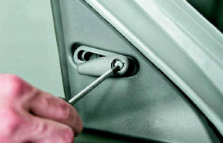 6. Придерживая зеркало снаружи, крестовой отверткой отворачиваем три винта крепления зеркала.