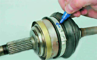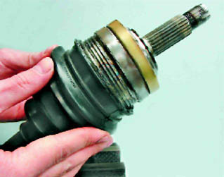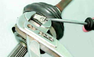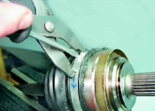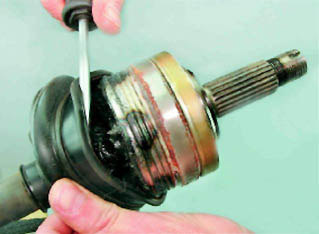 4. Таким же способом снимаем малый хомут защитного чехла наружного шарнира.