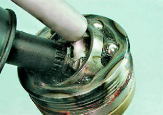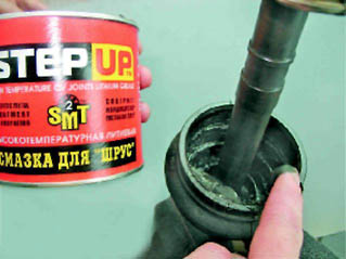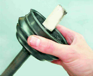 Предупреждение! Для наружного шарнира необходимо 40 см3 смазки. 7. Заполняем шарнир смазкой для шарниров равных угловых скоростей. Оставшееся от 40 см3 количество смазки закладываем в защитный чехол.