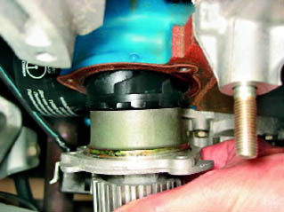 5. Поддев отверткой, снимаем насос с блока цилиндров.