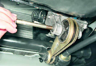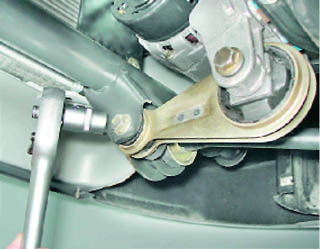 2. Ключом на 15 мм отворачиваем болт крепления штанги к поперечине.