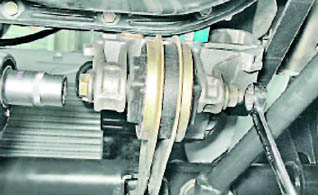 3. Двумя ключами на 15 мм отворачиваем гайку болта крепления штанги к двигателю.