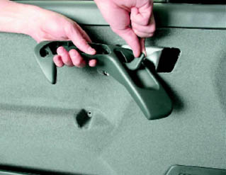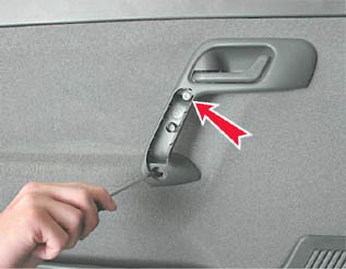 4. Снимаем ручку подлокотника (для этого оттягиваем внутреннюю ручку открывания двери и поворачиваем ручку подлокотника на 90° по часовой стрелке).