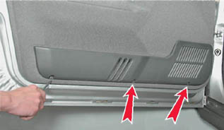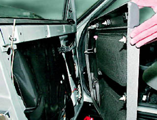 Установка Устанавливаем обивку двери в обратной последовательности. Перед установкой обивки проверяем держатели крепления - деформированные или поврежденные держатели заменяем.