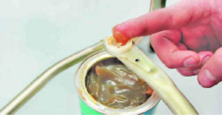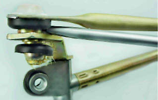 12. Аналогично смазываем вал другого рычага. 13. Ветошью, смоченной уайтспиритом, очищаем от старой смазки и грязи шарнирные соединения тяг стеклоочистителя. Наносим пластичную смазку на шарнирные соединения.