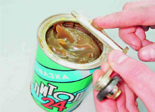 11. Ветошью, смоченной уайтспиритом, очищаем вал от старой смазки, загрязнений и следов коррозии. Наносим на вал пластичную смазку (Литол-24 или аналог).