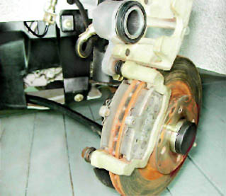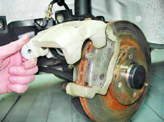 10. Снимаем тормозные колодки. 11. Небольшой металлической щеткой очищаем от грязи и ржавчины места установки колодок.