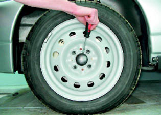 Подшипник ступицы переднего колеса - замена (без снятия поворотного кулака с автомобиля)Подшипник ступицы переднего колеса не регулируемый. При появлении люфта в подшипнике, его необходимо заменить. Для выполнения работы потребуются: - надежная подставка под автомобиль; - щипцы для снятия стопорных колец; - набор приспособлений для выпрессовки и запрессовки ступицы переднего колеса и ее подшипника. Снятие Предупреждение! Вы прессовывайте подшипник ступицы только в случае его замены, поскольку при демонтаже он, скорее всего, разрушится. 1. Подготавливаем автомобиль к выполнению работы (см. 5, п. 2б и 4). 2. Снимаем декоративный колпак колеса (см. 10.3.2). 3. Поддев шлицевой отверткой снимаем колпак ступицы.