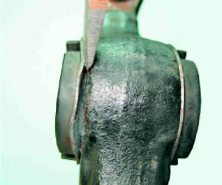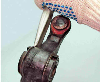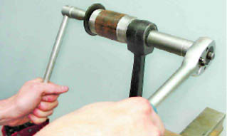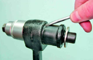 Для установки РМШ внутреннего конца рычага: 3. Надеваем шарнир на болт приспособления и наносим на наружную поверхность шарнира мыльный раствор.