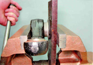 Установка Для установки РМШ наружного конца рычага: 1. При помощи тисков и упорной пластины, запрессовываем части нового шарнира.