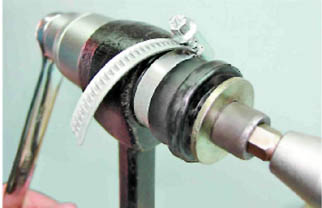 6. Для облегчения работы можно стянуть резиновую втулку хомутом.