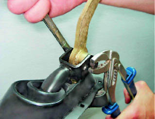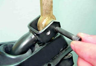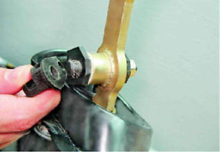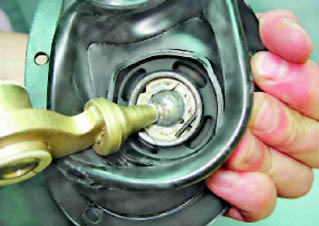 7. Оперев рычаг о край обоймы, извлекаем шаровой наконечник рычага из опоры.