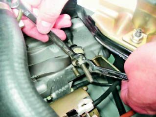 2. Удерживая регулировочную гайку ключом на 13 мм, вторым таким же ключом отворачиваем на несколько оборотов контргайку.