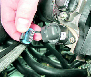 Регулятор холостого хода - проверка и заменаПредупреждение! Перед выполнением работы ознакомьтесь с мерами предосторожности при ремонте системы управления двигателем (см. 8.4.1). Для выполнения работы потребуются: - мультиметр (в режиме вольтметра и омметра); - отрезки проводов. Проверка 1. Подготавливаем автомобиль к выполнению работы (см. 5, п. 1 и 2). 2. Освобождаем фиксатор колодки жгута проводов.