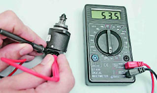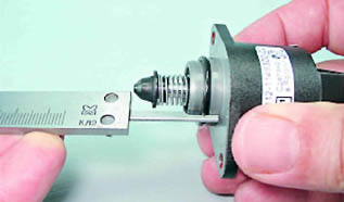 Замечание: Электрическое сопротивление между выводами А-В и C-D должно быть около 53 Ом Сопротивление между выводами А-С и B-D должно быть большим (стремиться к бесконечности). Неисправный регулятор необходимо заменить. Установка Предупреждение! Перед установкой нового регулятора необходимо убедится что, игла клапана выступает не более чем на 23 мм. 1. Штангенциркулем с глубиномером измеряем выступание иглы нового клапана.
