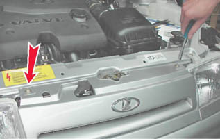 2. Открываем капот и торцовым ключом на 8 мм отворачиваем два самореза верхнего крепления решетки радиатора.