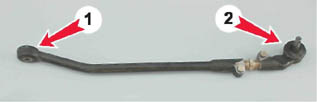 Установка 1. Перед установкой новых тяг убеждаемся, что их резьбовые вставки завернуты в тяги и наконечники на одинаковое количество витков резьбы. 2. У снятых тяг измеряем расстояния между отверстиями резинометаллических шарниров их крепления к рулевому механизму (1) и центрами заглушек отверстий под шаровые пальцы в наконечниках тяги (2).