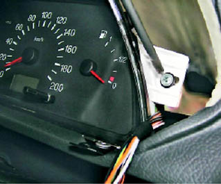 5. С обеих сторон щитка крестовой отверткой отворачиваем два винта крепления щитка приборов к кронштейнам панели приборов.