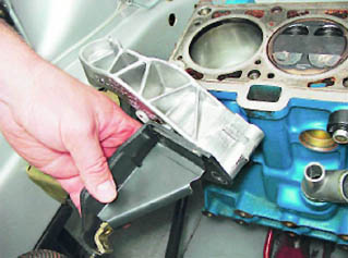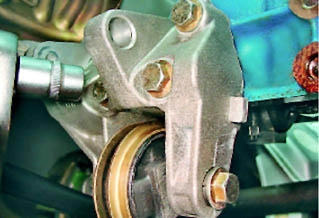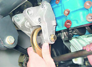 25. Снимаем кронштейн опоры двигателя в сборе с верхним кронштейном крепления генератора.