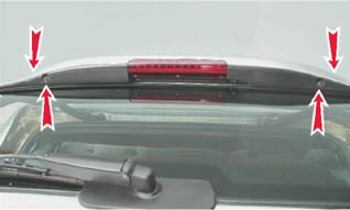 9. Снимаем основание спойлера с двери. Установка Устанавливаем спойлер в обратной последовательности. При этом поврежденную липкую ленту удаляем и наклеиваем новую. Совет: На поврежденные участки ленты можно нанести герметик. |
