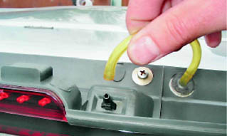 7. Отсоединяем трубку от форсунки стеклоомывателя.