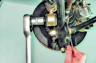 Стабилизатор поперечной устойчивости - снятие, установка, замена подушек и стоекДля выполнения работы потребуется смотровая яма или эстакада. Снятие 1. Подготавливаем автомобиль к выполнению работы (см. 5, п. 2б и 4). 2. Снимаем передние колеса (см. 10.3.3). 3. Двумя ключами на 17 мм отворачиваем гайку болта крепления стойки стабилизатора к нижнему рычагу передней подвески.
