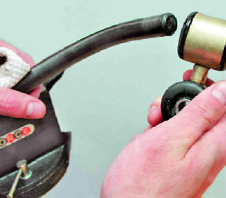 Примечание: Стойки стабилизатора можно заменить на автомобиле, не снимая штангу (после п. 4). 8. Любым доступным способом (маркером, липкой лентой) отмечаем место установки подушек на штанге.