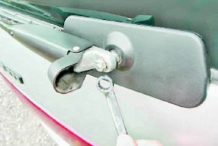 12. С наружной стороны двери накидным ключом на 24 мм отворачиваем гайку крепления моторредуктора.