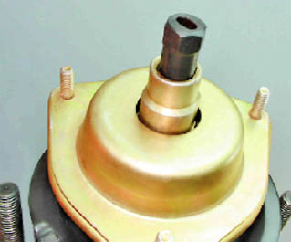 5. Устанавливаем приспособление на гайку и шток амортизатора.