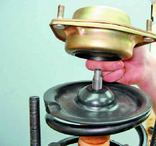 7. Снимаем гайку и шайбу. 8. Снимаем со стойки верхнюю опору.