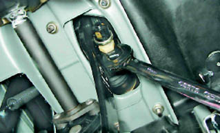 4. Рожковым ключом на 19 мм ослабляем затяжку контргайки выключателя.